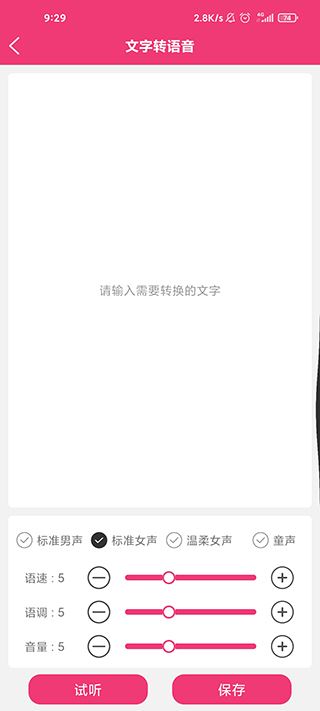 3、以文字转语音功能为例,只需输入文字,即可将其转化为语音;